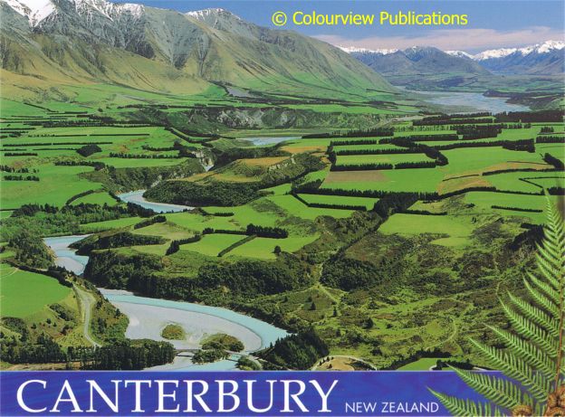 a wide shingle bed crossing Canterbury Plains to the coast.